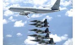Os avião-tanque da Boeing abastece os caças em pleno voo